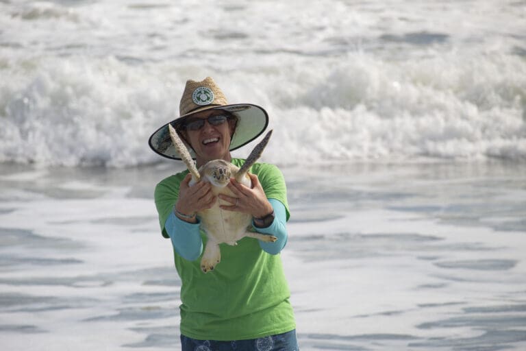 Two juvenile green sea turtles are back in the ocean thanks to the rehabilitation efforts of East Coast Zoological Foundation’s (ECZF) Sea Turtle Healing Center at Brevard Zoo. Cassieopeia and Cheyenne were privately released from Lori Wilson Park to the delight of beachgoers and a group of our incredible Bowen
